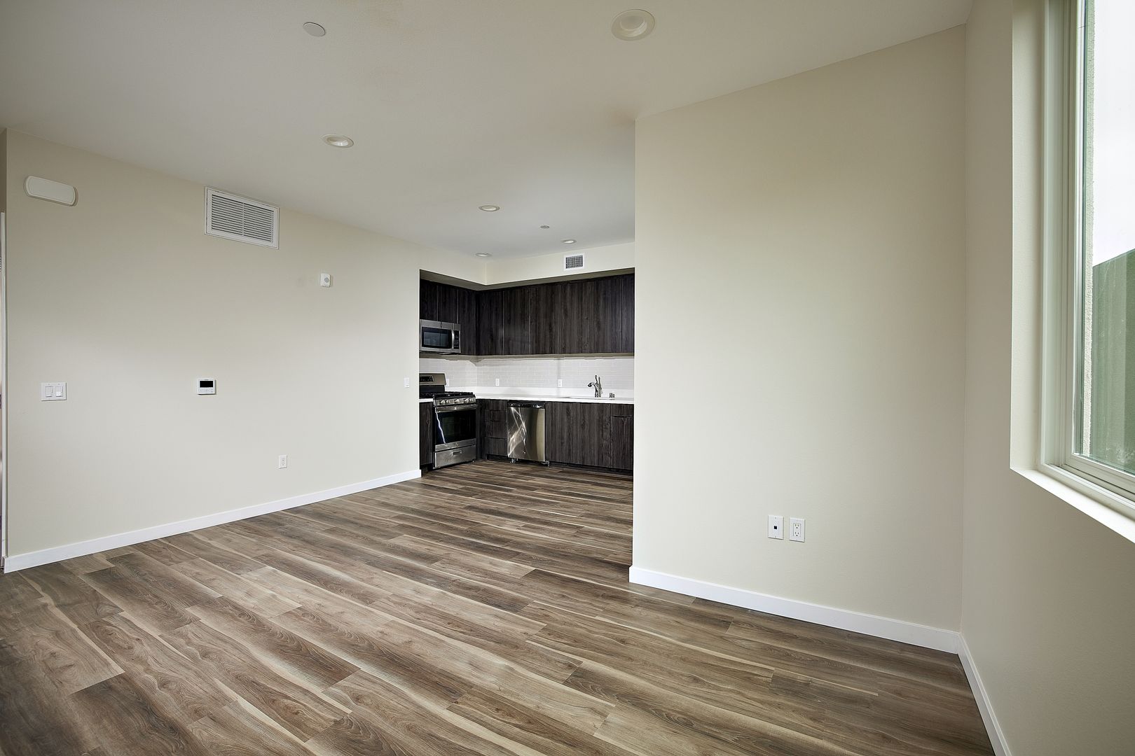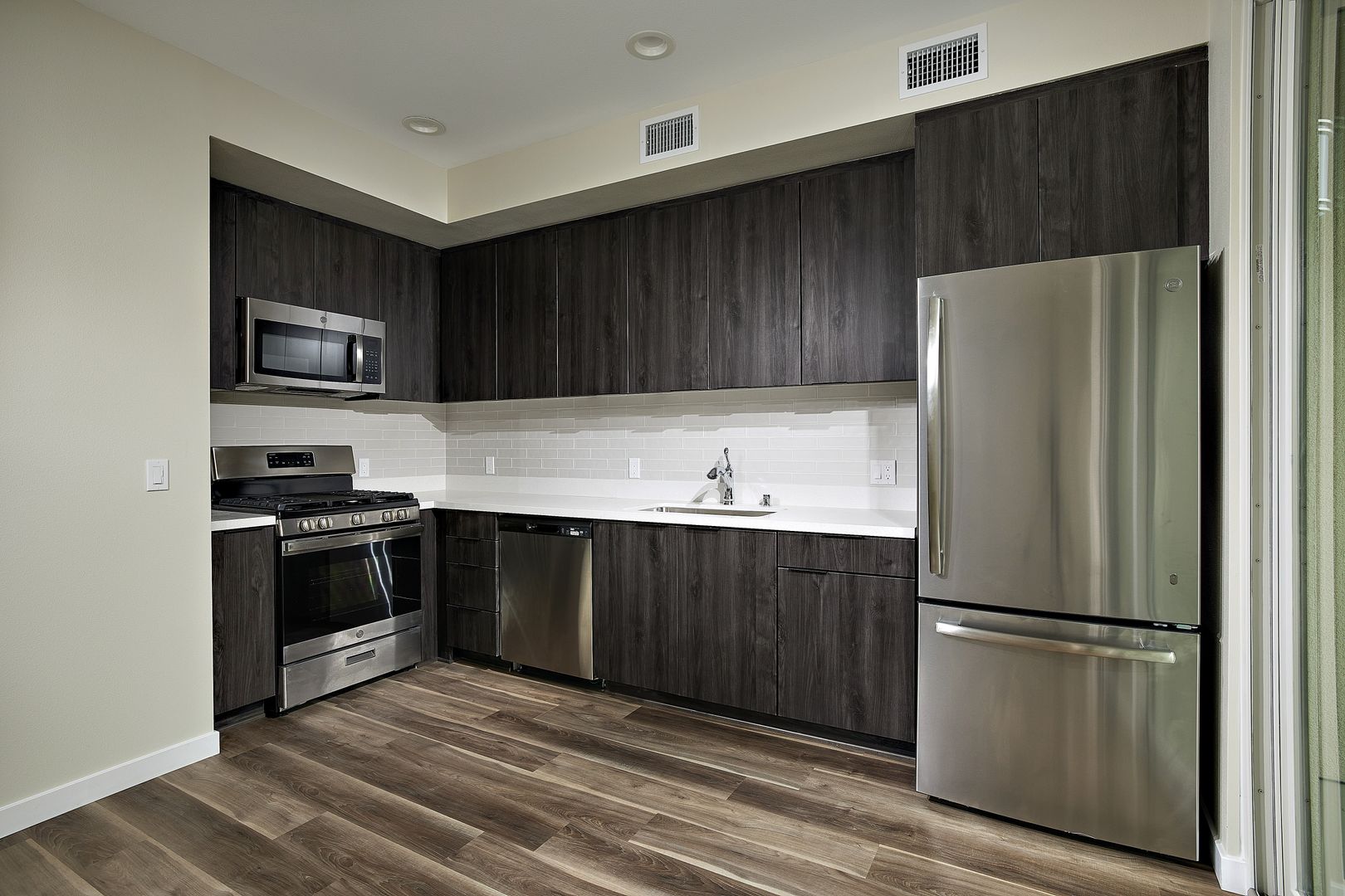 Modern convenience and comfort meet in this wonderful apartment home. Stylishly appointed with a full kitchen including stainless steel appliances, quartz countertops and LED recessed lighting, we know you’ll fall in love with its sleek, sophisticated design. This spacious dwelling provides ample storage and is equipped with an in-suite washer and dryer and air conditioning.